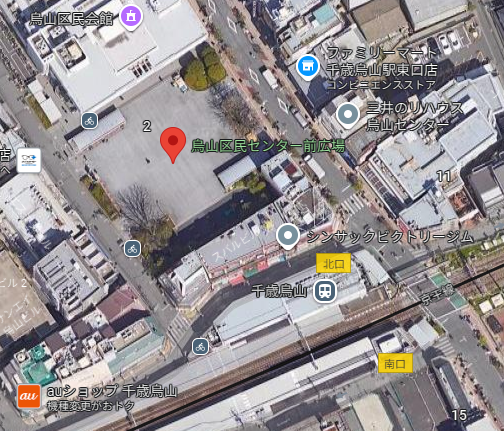 京王線千歳烏山駅からすぐの商店街「えるもーる烏山」の中にある、地域住民の憩いの広場。